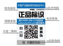 不干膠防偽標簽:實用特性凸顯的優(yōu)勢作用 08-211、請刮開(或揭開)產(chǎn)品上的防偽標識